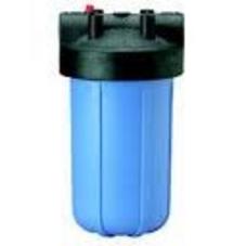 This whole house filter housing is manufactured of reinforced polypropylene.  The thread closure allows for years of cartridge change outs without failure.  The thick walls and multiple rib design makes the whole house filter ideal for this application.  The clean look makes them preferred in residential and commercial uses.  This unit has a pressure relief bleed button on the inlet side of the cap.  The pressure relief mechanism is constructed of a stainless steel spring and screw, gasket and polypropylene red button.